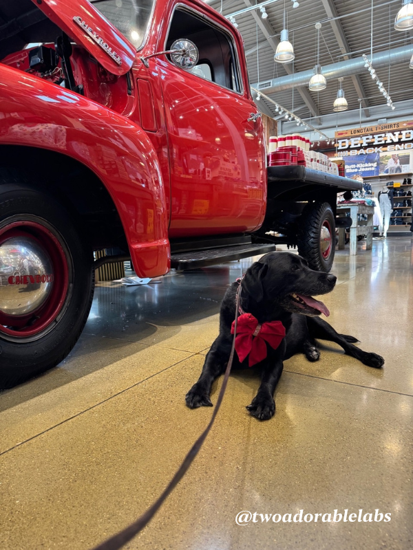 I was so happy to find that Duluth Trading allows dogs. Maggie and I went Christmas shopping for Mr. TAL, enjoyed taking some pictures by their beautiful red truck and got some pets and tail wags along the way.